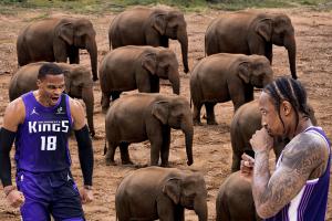 德罗赞表示:“如果威少跟十只大象打架,那我也会跟他并肩战斗!”