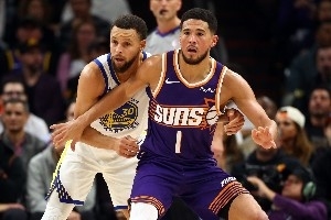 布克(场均26.1分,6次助攻)是一名技术细腻且高效的三威胁得分手,他是太阳的头号攻击箭头,也是这支极其依赖三分球的球队制造罚球机会的核心。勇士是联盟中仅有的四支在场均三分命中数(14.8个)和出手数(40.8次)上都超过太阳的球队之一,而太阳阵中并没有那种能在进攻发起点给勇士制造麻烦的灵敏型后卫与锋线。