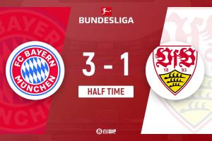 半场结束,拜仁暂3-1斯图加特。